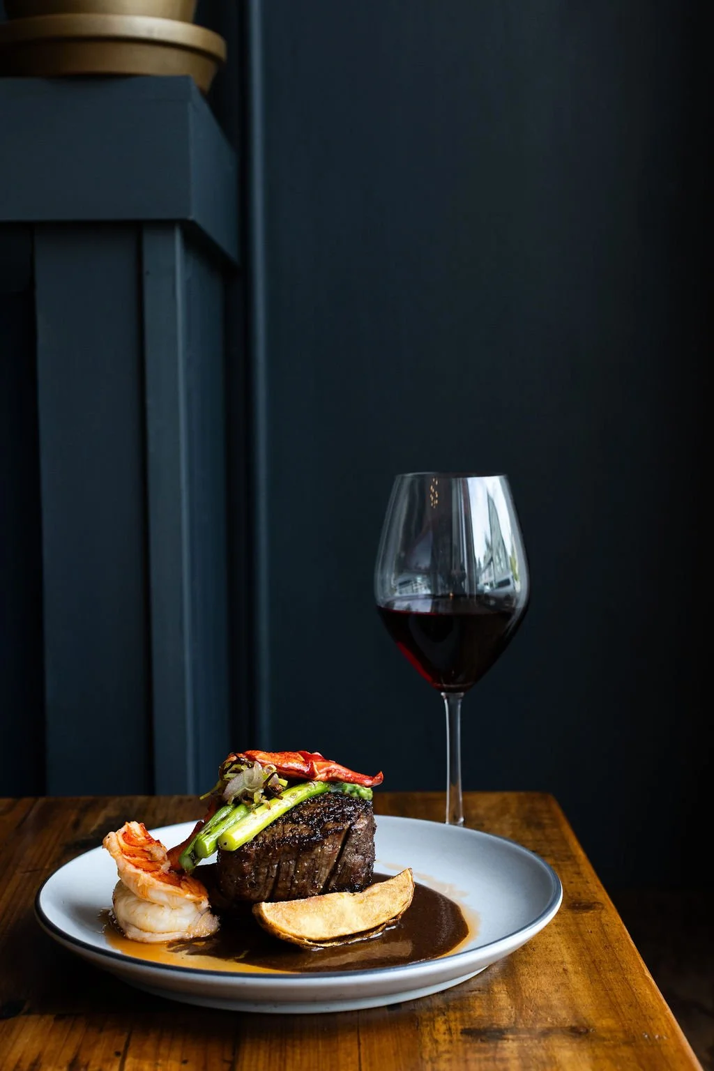8oz Prime Cut, Bordelaise, Braised Leeks & Mushrooms, Root Vegetable Mash
